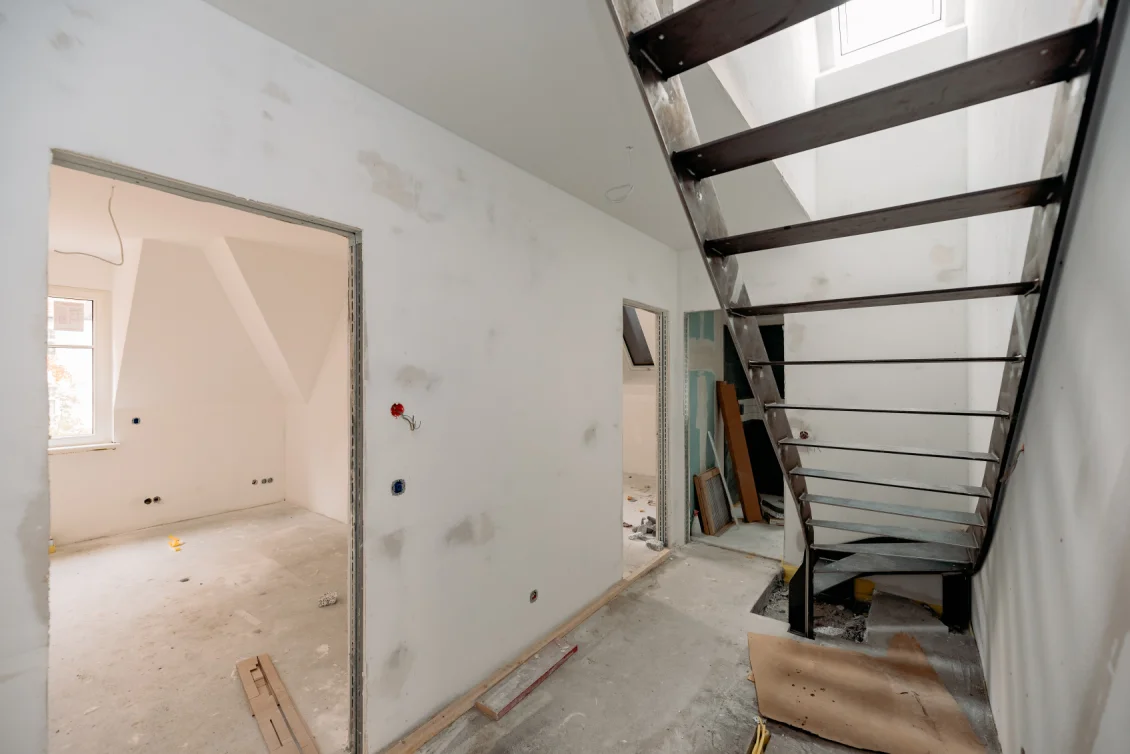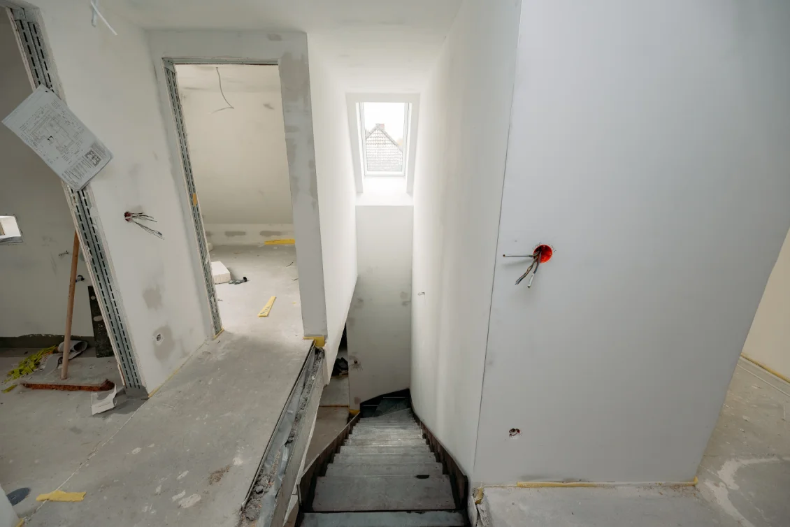 Im Dachgeschoss wurde die erste Stahltreppe eingebaut. Die robuste Konstruktion sorgt für Sicherheit und Haltbarkeit, während die präzise Anpassung an die Raummaße ein harmonisches Gesamtbild ermöglicht. Gleichzeitig wurden die Fensterbänke montiert, sodass die Malerarbeiten an den angrenzenden Flächen beginnen können.