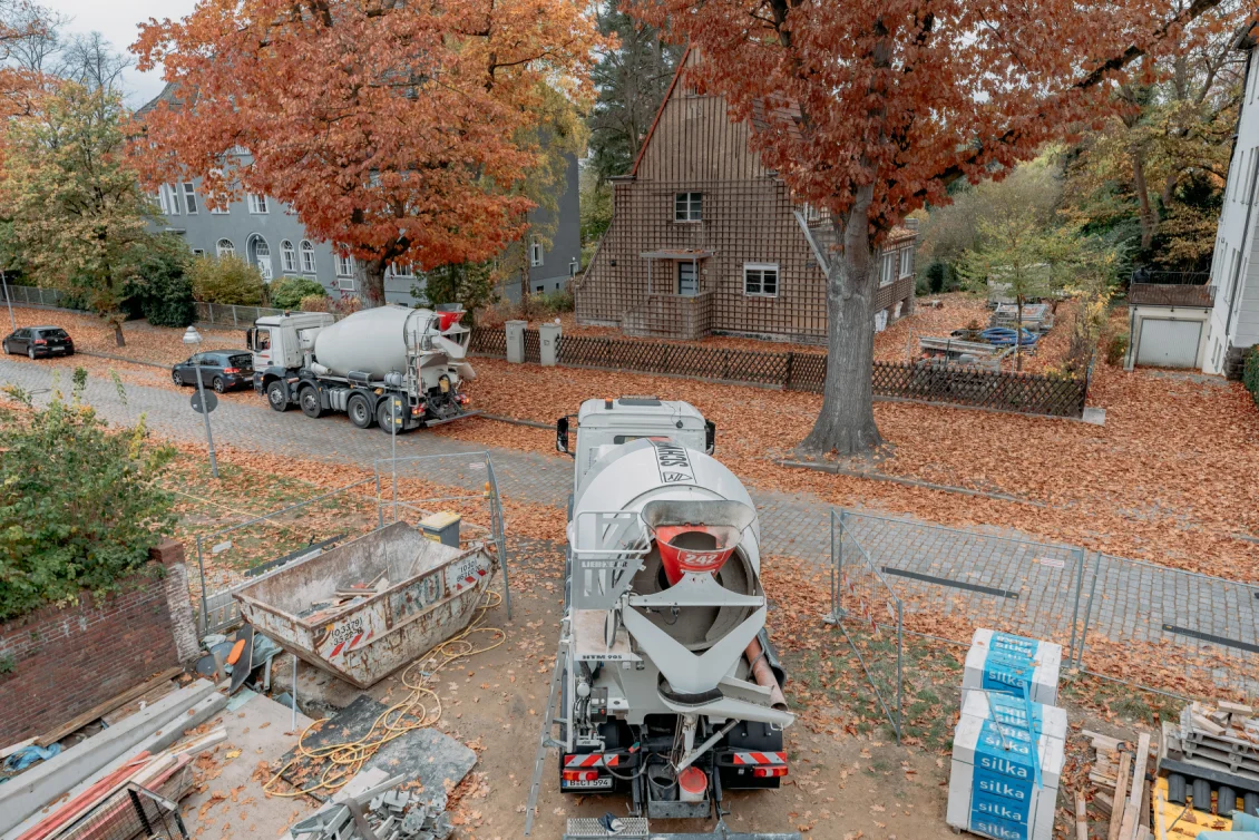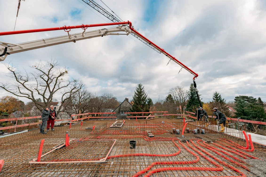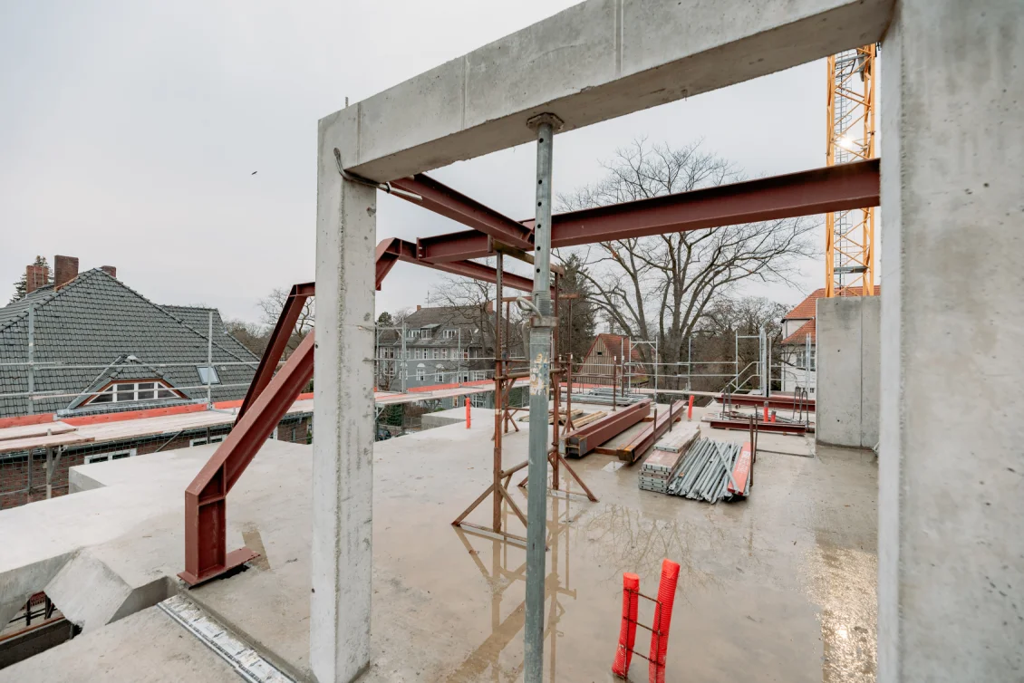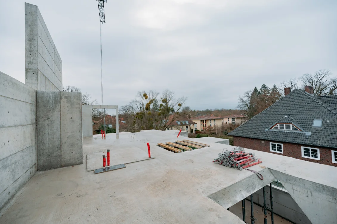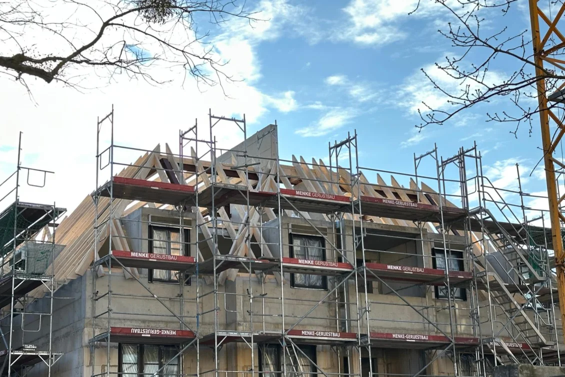 Die Stahlträger für den Dachaufbau und den Zugang zur Dachterrasse werden montiert. Der Charakter der oberen Etage wird immer deutlicher, und die Arbeiten markieren einen weiteren wichtigen Fortschritt. Trotz nasskalter Witterung rücken wir Schritt für Schritt näher an das nächste Ziel – ein Meilenstein in der Fertigstellung des Rohbaus!