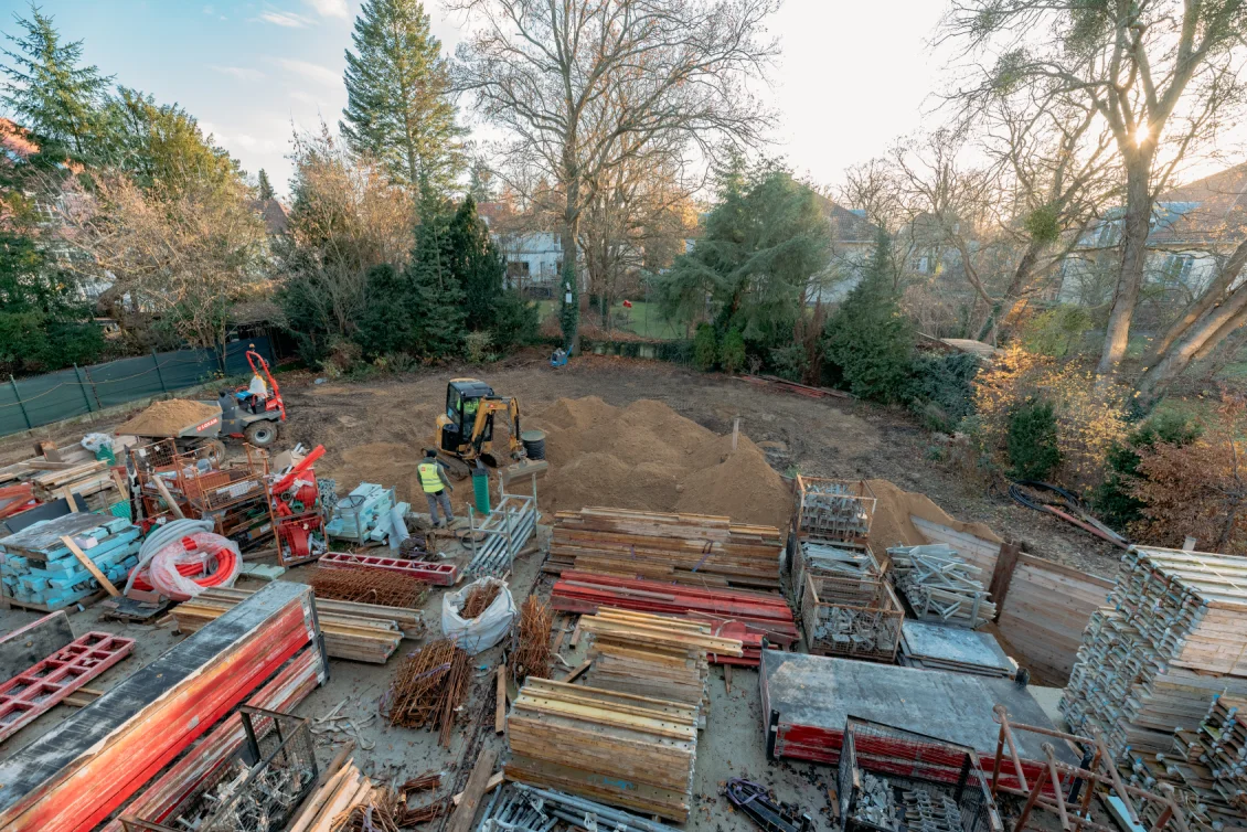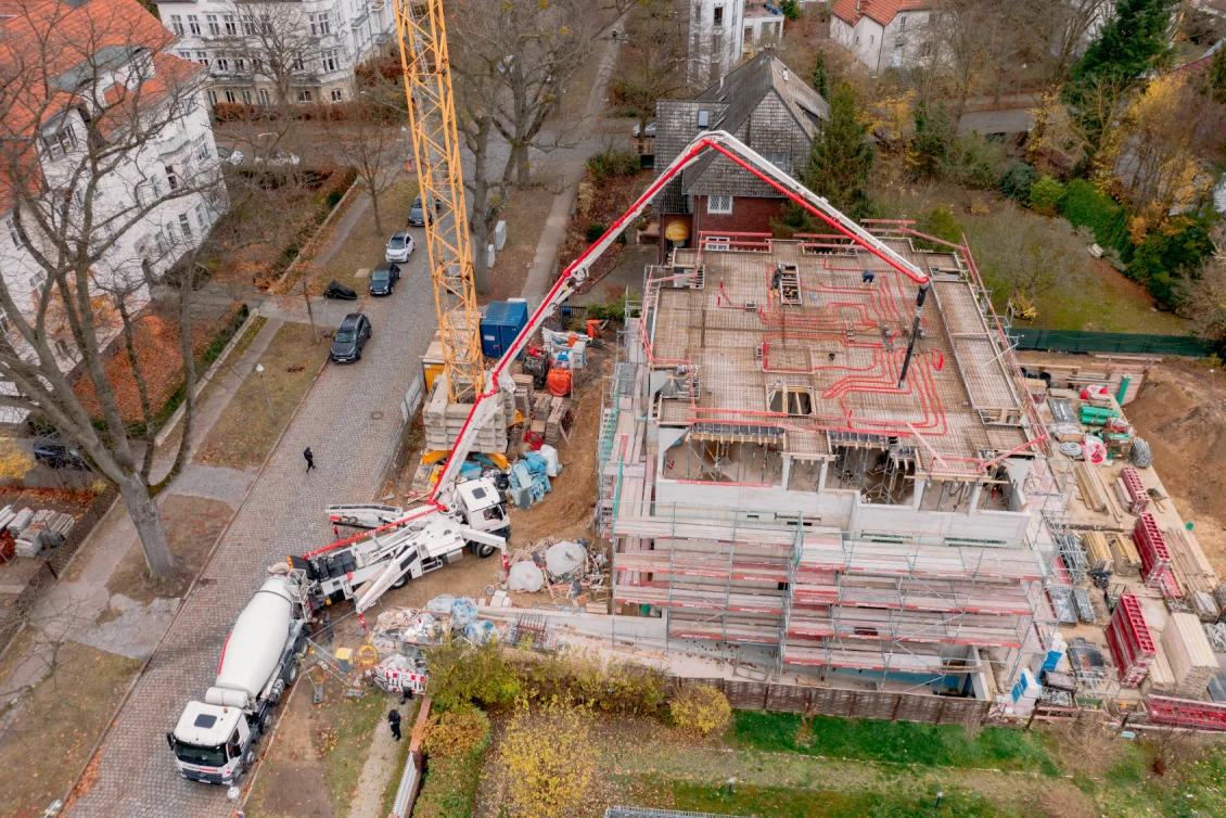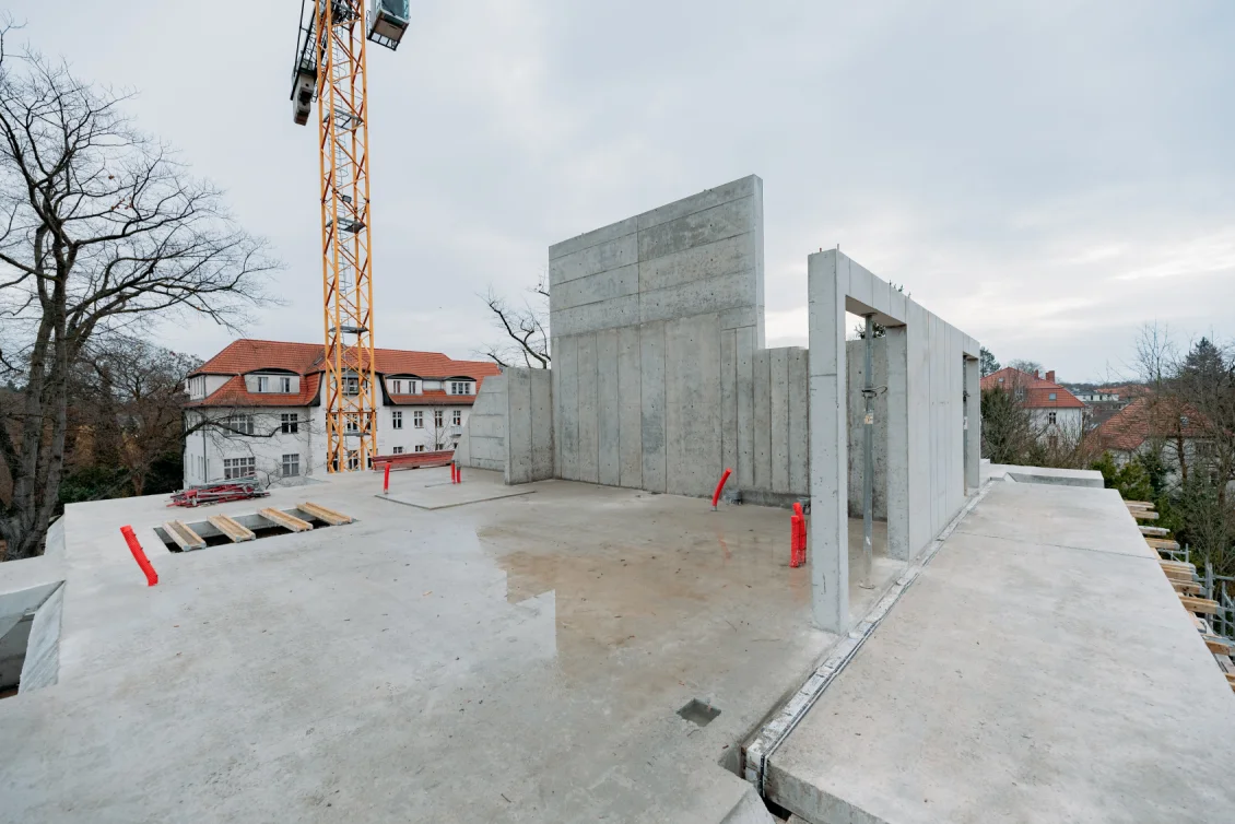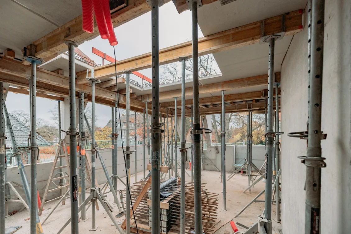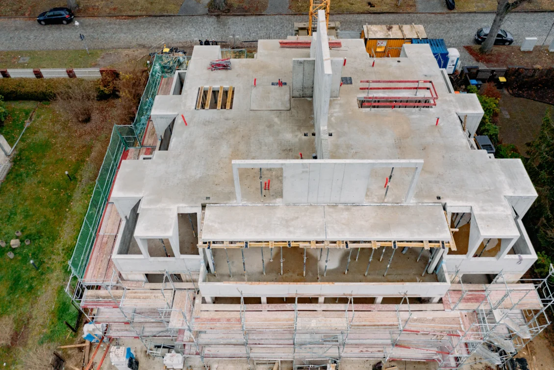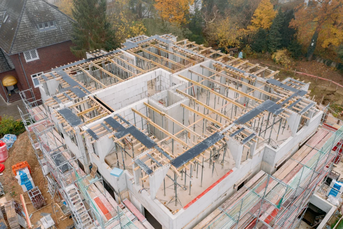 Die Stahlträger für den Dachaufbau und den Zugang zur Dachterrasse werden montiert. Der Charakter der oberen Etage wird immer deutlicher, und die Arbeiten markieren einen weiteren wichtigen Fortschritt. Trotz nasskalter Witterung rücken wir Schritt für Schritt näher an das nächste Ziel – ein Meilenstein in der Fertigstellung des Rohbaus!