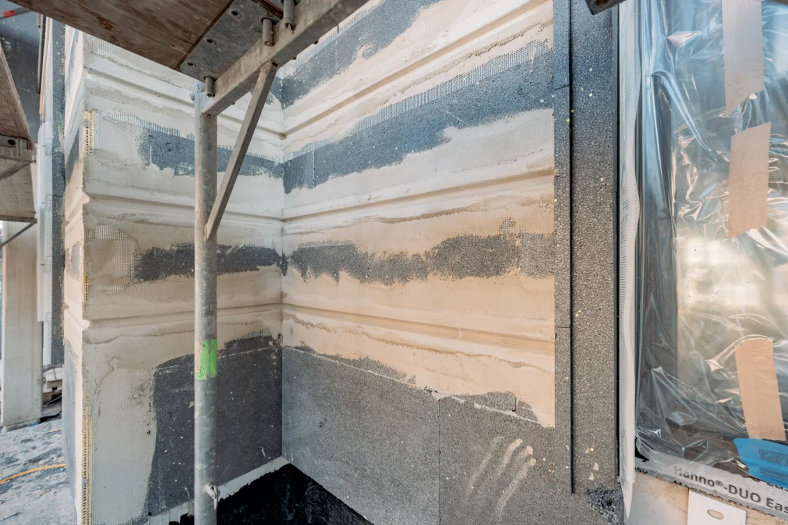 Die Woche präsentierte sich mit strahlendem Sonnenschein und den ersten Krokussen – ein Vorgeschmack auf den Frühling. Im Mittelpunkt standen die Arbeiten an der Fassade und den Fensterfaschen. Die frischen Spachtelarbeiten bilden die Grundlage für die späteren Bossen, die der Fassade ihre markante Tiefenwirkung verleihen. Die Ausführung der Fensterfaschen spiegelt den hohen Qualitätsanspruch dieses Projekts wider.