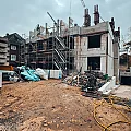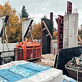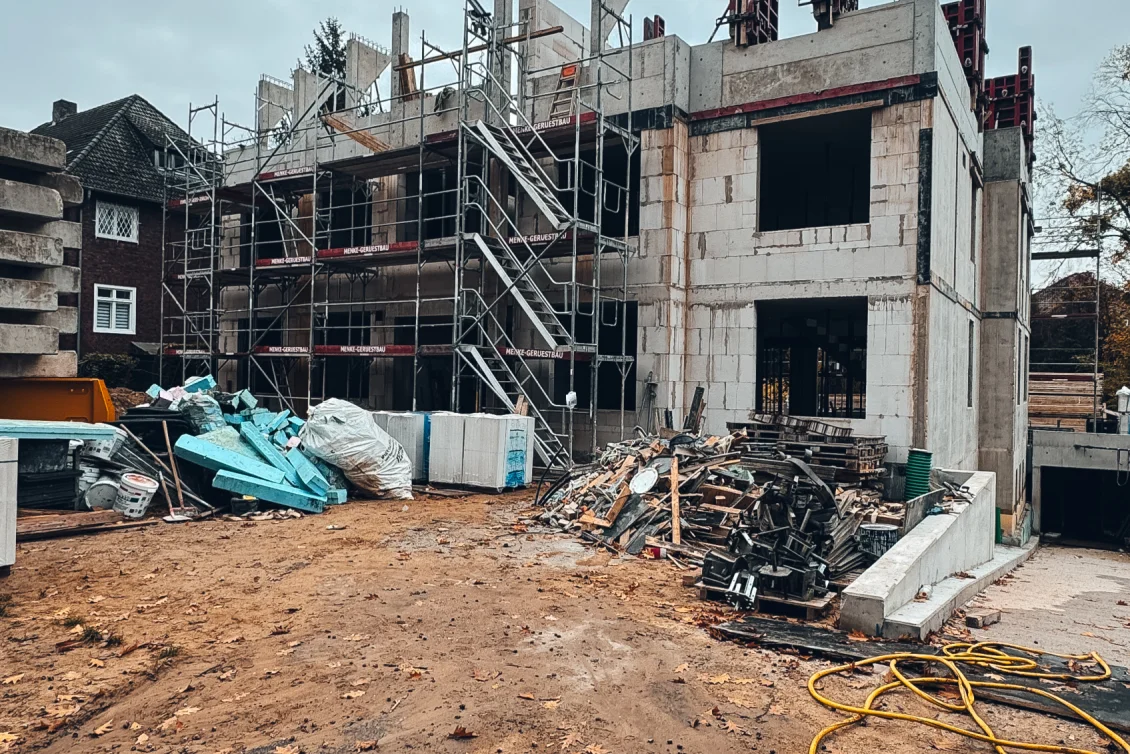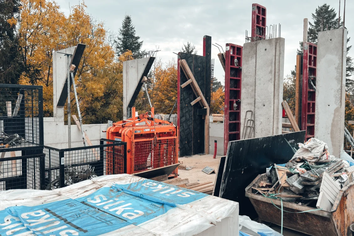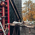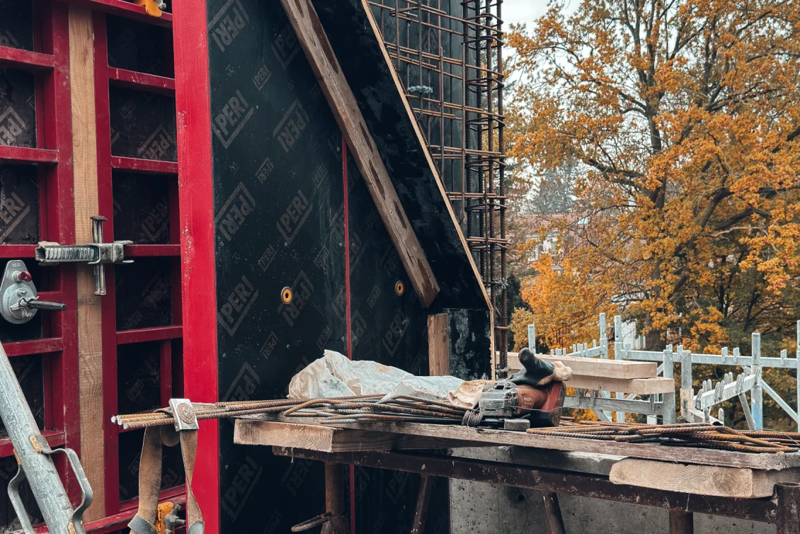 Die Bewährung der Gaubenwände wird nach und nach hergestellt und selbige Abschnittsweise betoniert. Die Errichtung der Gaubenwände ist auf Grund ihrer Form deutlich aufwändiger als die Herstellung der Drempel- und Brüstungswände und benötigt somit mehr Feinarbeit und Zeit.